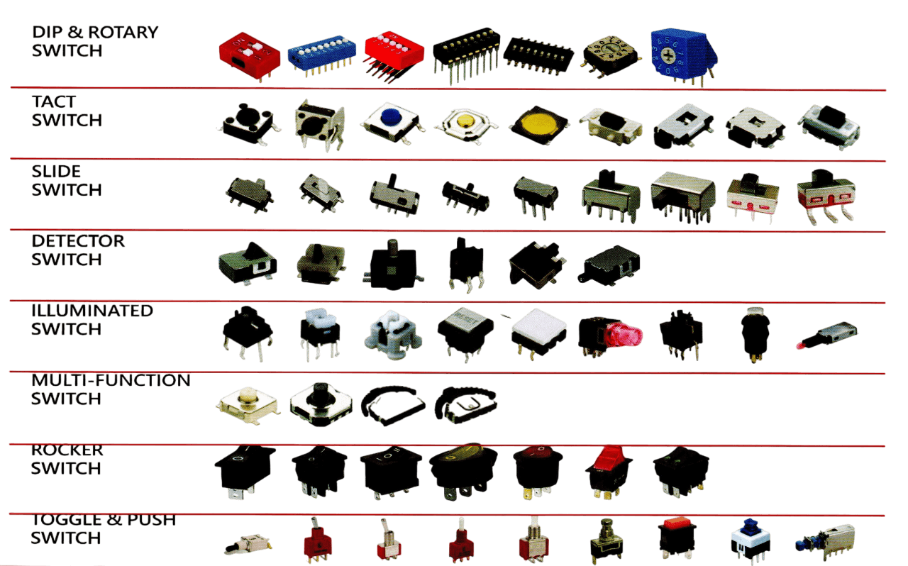 Tact Switch、Slide Switch、Rocker Switch、DC Jack、Phone Jack